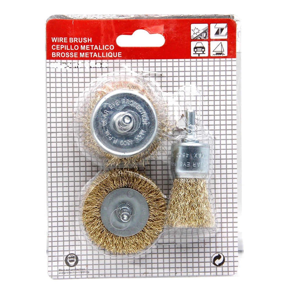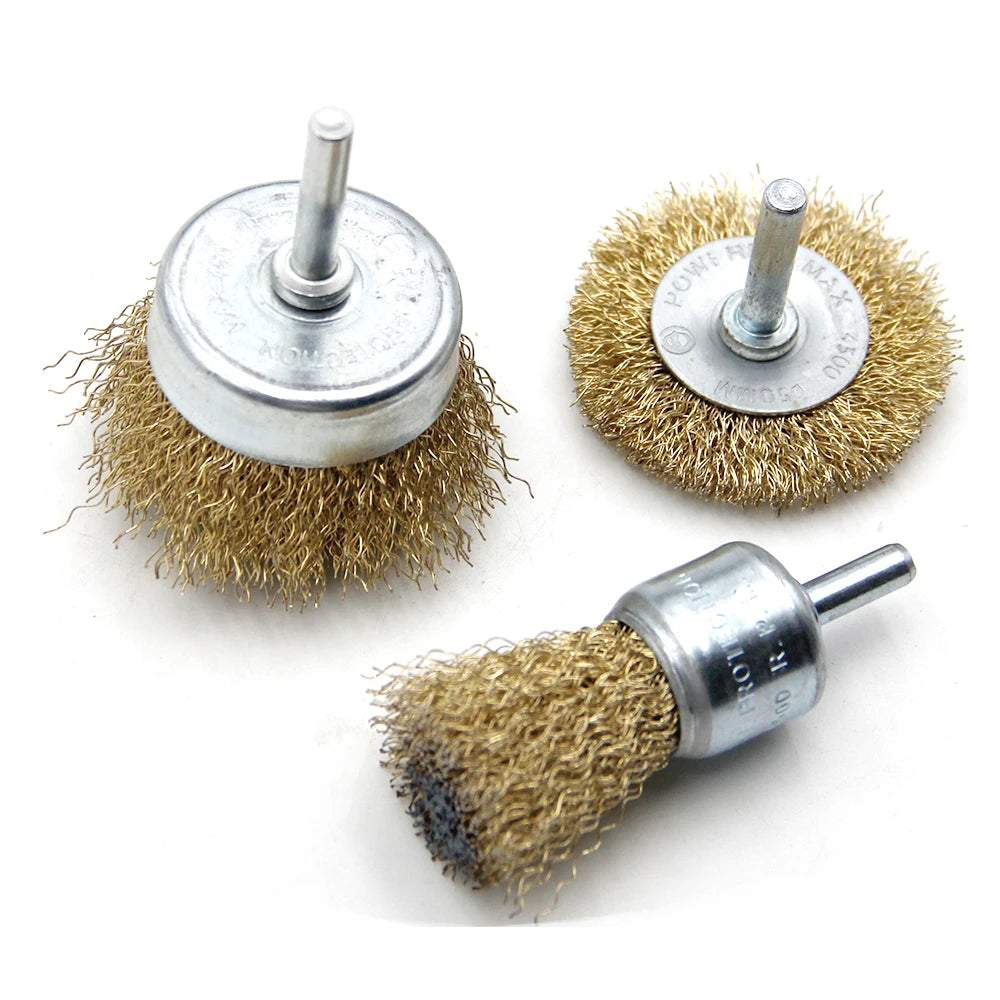 3-teiliges Stahldrahtbürsten-Set für die Holzbearbeitung – T-förmig, schalenförmig, stiftförmig