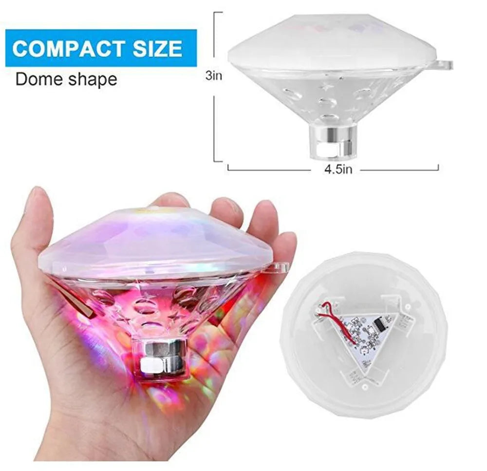 Verwandeln Sie jede Wasserumgebung mit dieser LED-wasserdichten Unterwasserleuchte, einer vielseitigen und auffälligen Ergänzung für Ihre Badewanne, Ihren Swimmingpool, Ihr Aquarium oder Ihren Springbrunnen. Hergestellt aus robustem ABS mit 7 SMD2835-LED-Lampen, liefert diese diamantförmige Lampe ein beeindruckendes Farbspektrum aus Rot, Orange, Blau und Grün in 8 statischen und dynamischen Modi und schafft so eine faszinierende Atmosphäre zum Entspannen oder Feiern. Betrieben mit 3 AAA-Batterien (nicht im Lieferumfang enthalten), ist sie vollständig tauchfähig mit einem IP68-Schutzgrad, der eine sichere und zuverlässige Leistung unter Wasser gewährleistet. Das kompakte, schwimmende Design misst 10,7 x 10,7 x 8 cm und eignet sich ideal als Badespielzeug für Kinder, Partydekoration oder stimmungsvolle Beleuchtung in Bars und Wohnzimmern. Einfach zu bedienen mit einem einfachen Klopfschalter, bringt dieses eigenständige Licht lebendige Farben und Charme in jede wasserbasierte Umgebung, von spielerischer Badezeit bis hin zu eleganten Abenden am Pool.