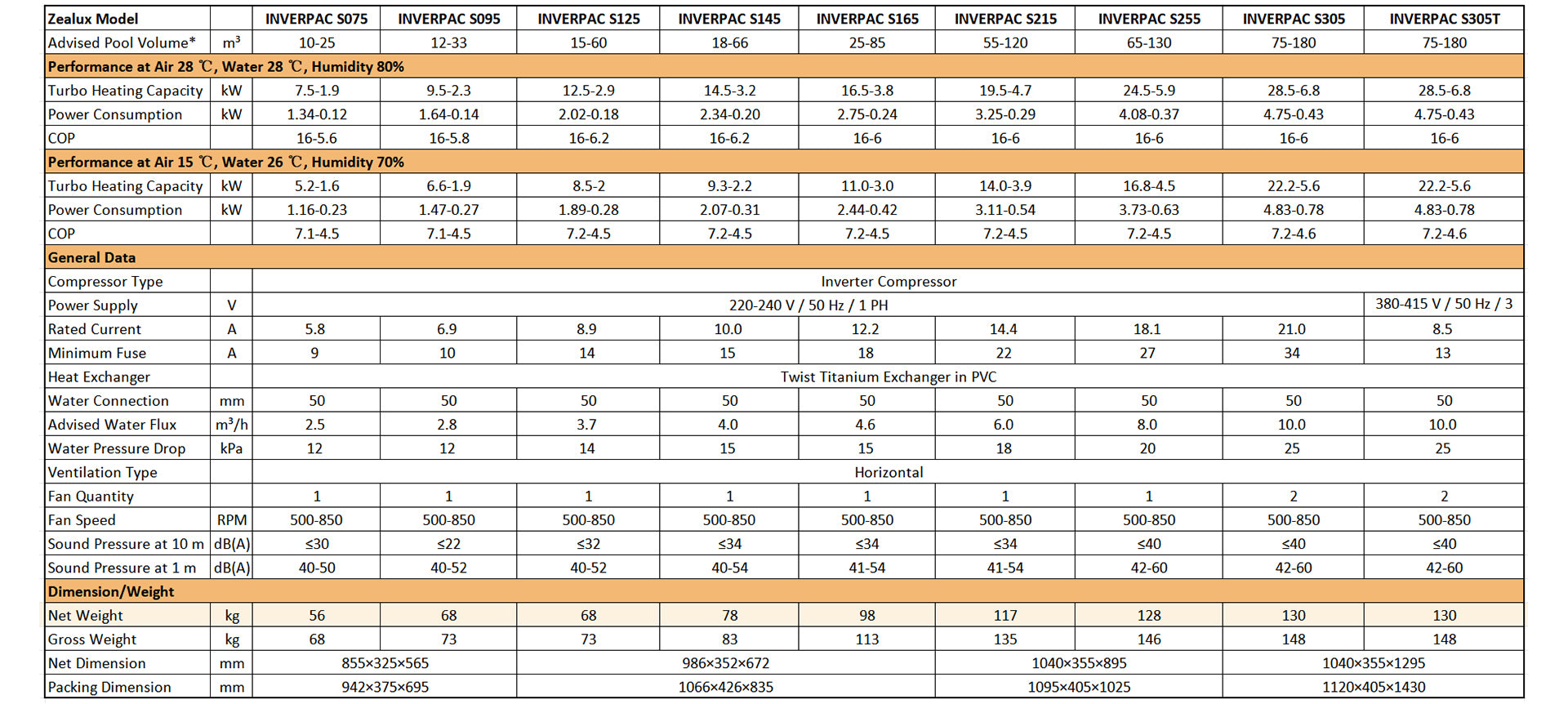 Zealux 7,5 kW~28,5 kW INVERBOOST Elite Pool-Wärmepumpe - Einzel-/Doppellüfter