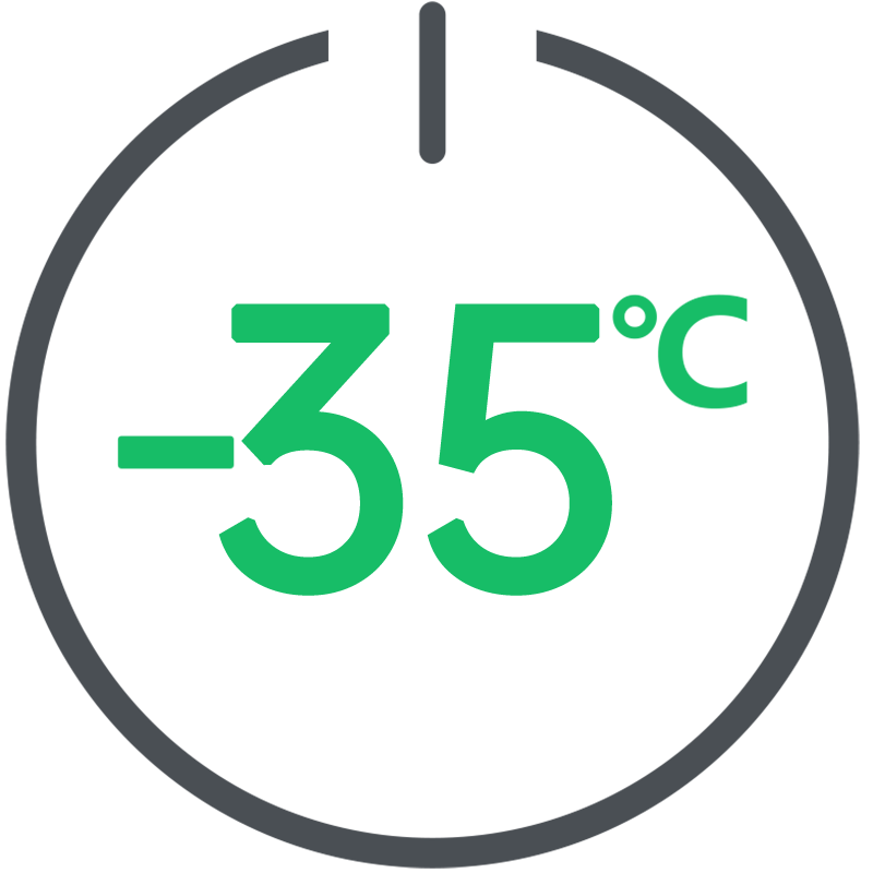 • Utilizando la tecnología de Inyección de Vapor Mejorada (EVI), garantiza un alto rendimiento y un alto COP incluso en temperaturas extremadamente bajas (-35°C)