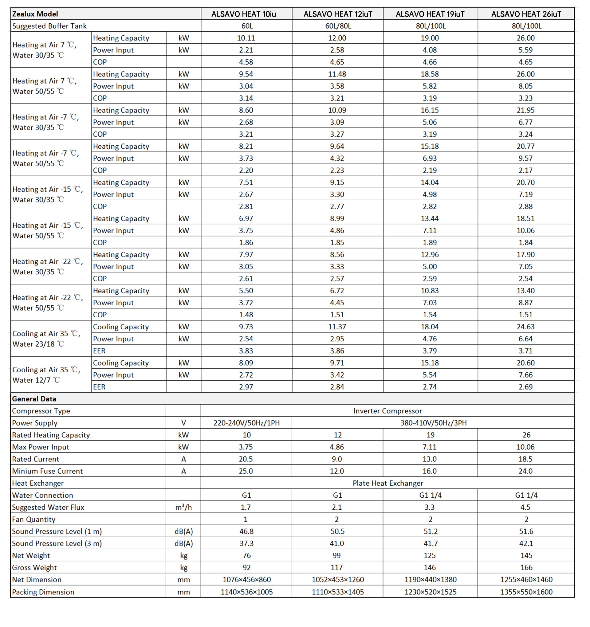 Bomba de Calor de Fuente de Aire Monobloque ALSAVO EVI 10kW~26kW - Ventiladores Sencillos/Dobles - Inverboost Multifuncional/agua caliente