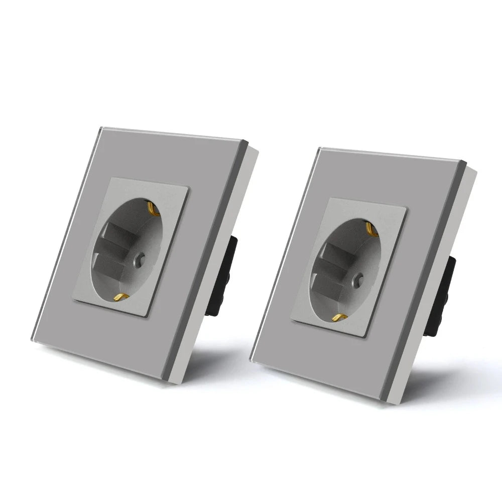 2Paquete Interruptores de Pared Táctiles 1Gang 2Vías Sensor LED Cristal Templado Interruptor Estándar EU Luz de Fondo Azul 240V
