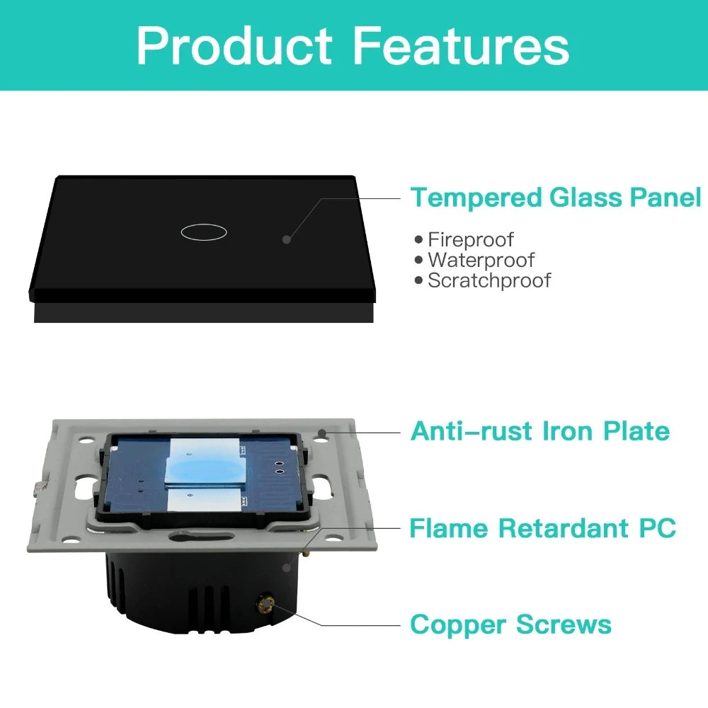 Material: Panel de Vidrio & Placa de Hierro & Módulo de Interruptor de Plástico