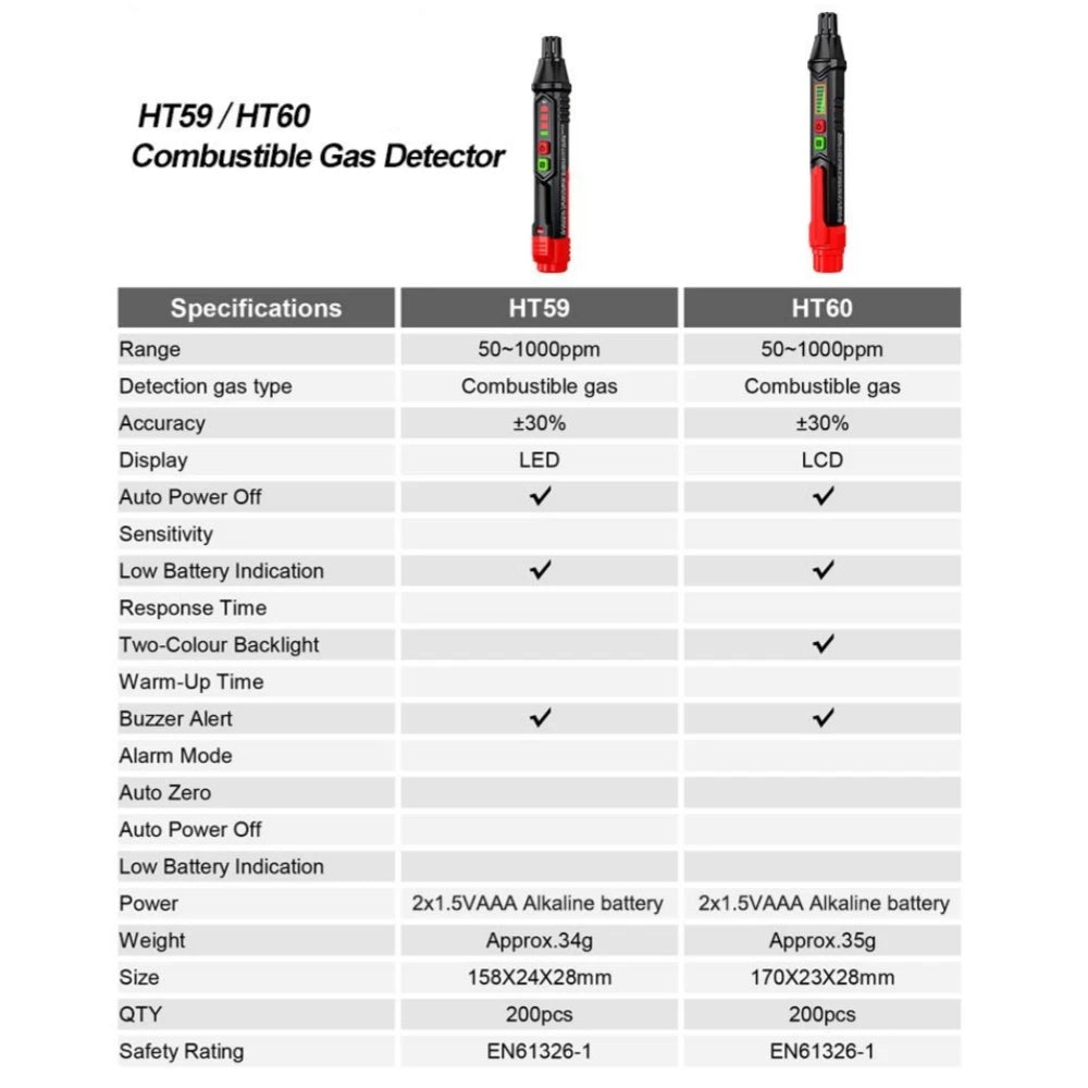 Detector de Fugas de Gas HT59 HT60 0-1000PPM Alarma de Sonido y Pantalla Combustible Inflamable Natural Metano Mini Detector de Gas