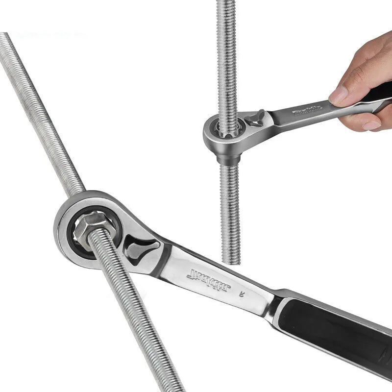 5. El sistema de trinquete y zócalo pasante te permite apretar tuercas en varillas roscadas