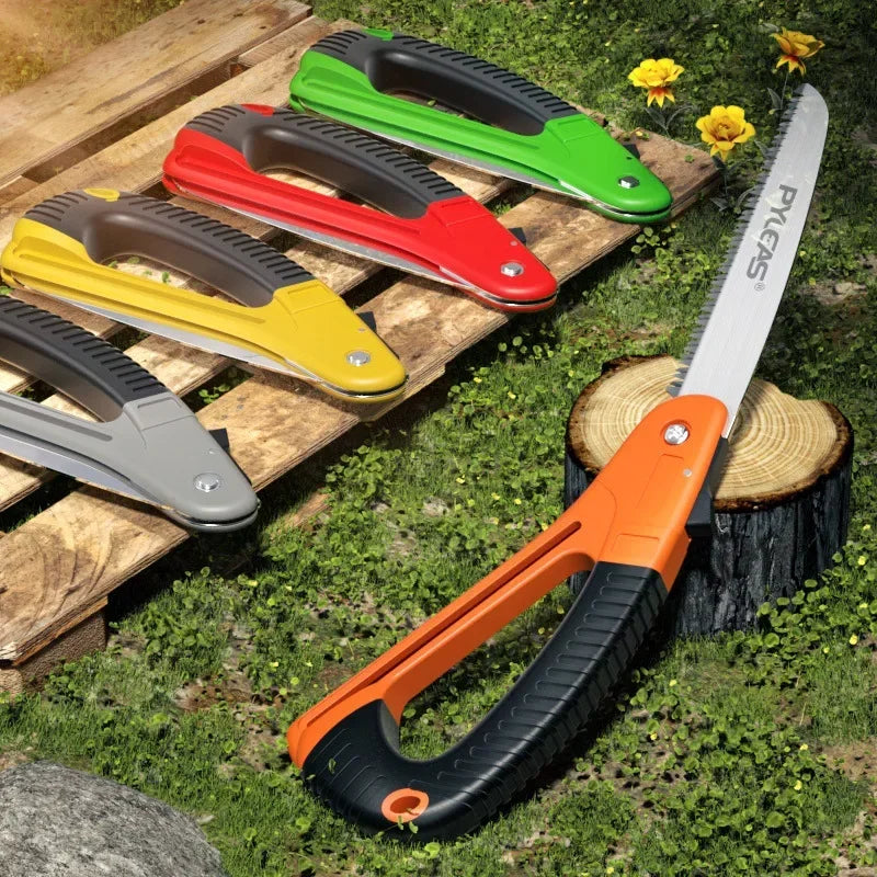 Diseño Cómodo - A diferencia de las sierras plegables tradicionales, esta sierra de poda presenta un mango en forma de arco cómodo, asegurando un agarre seguro y previniendo la fatiga de la mano durante el uso prolongado.