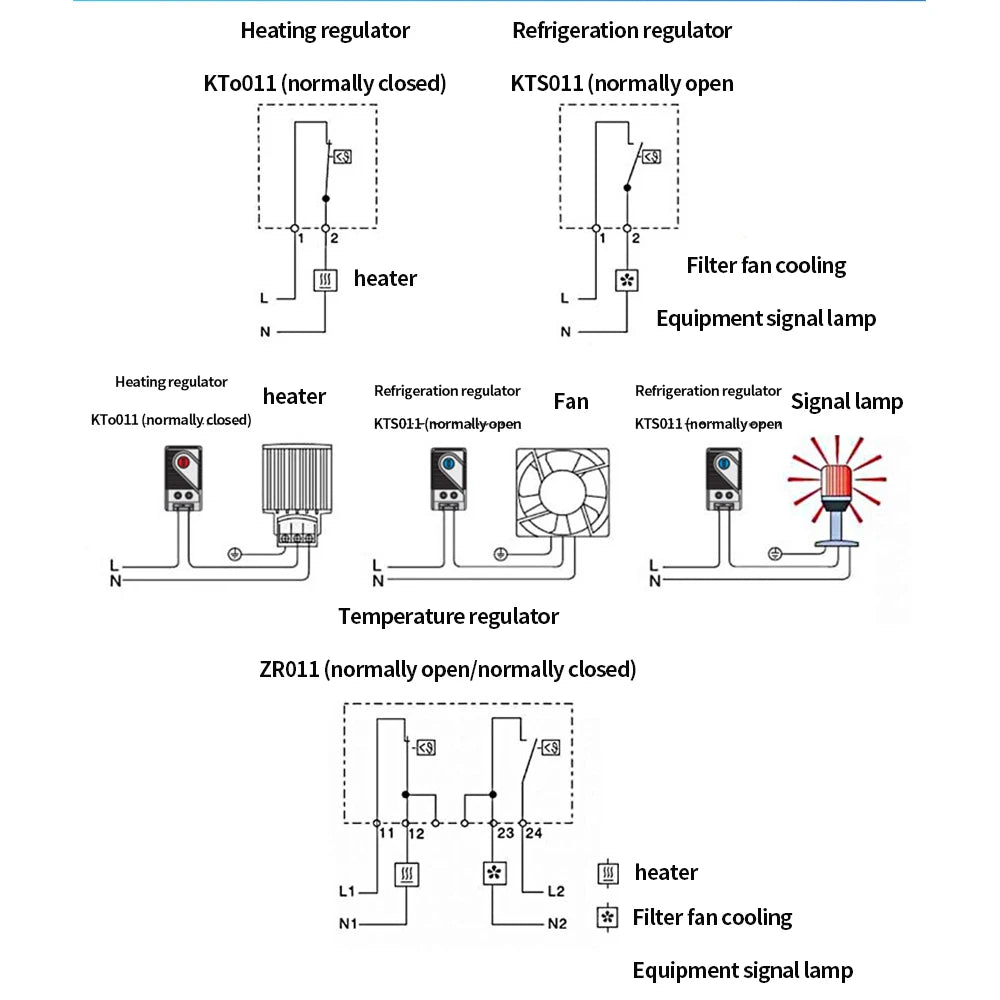 ZR011: termostato (normalmente abierto y normalmente cerrado), de doble uso para calefacción y enfriamiento.