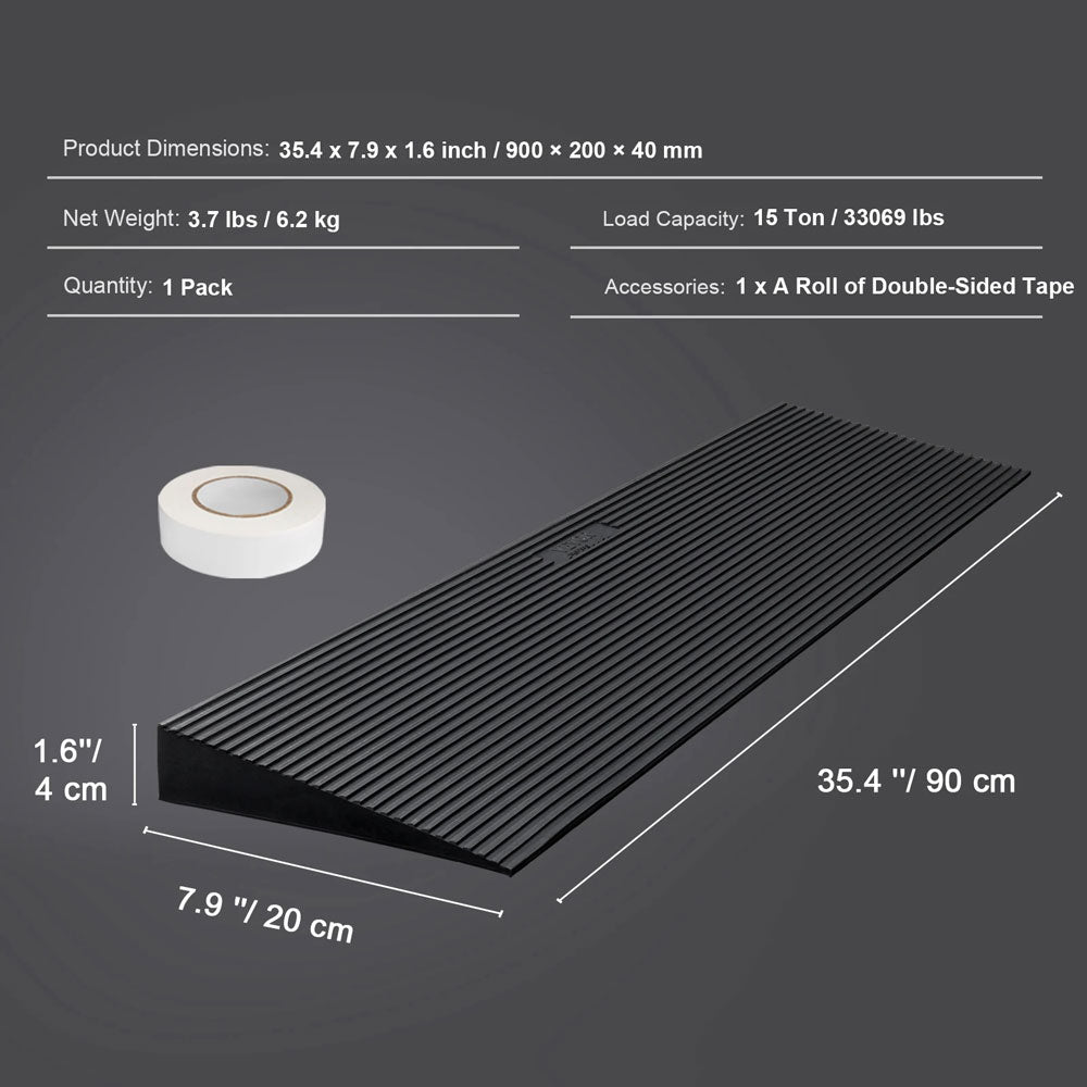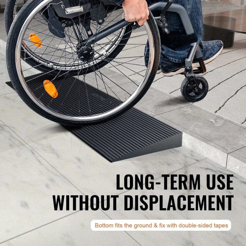 Rampa de Umbral Recortable de Goma Natural para Silla de Ruedas de 1.2" con Cinta Adhesiva Doble Cara para Puertas y Entradas