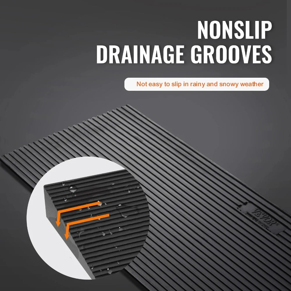 Superficie Antideslizante: Diseñada con ranuras antideslizantes, la superficie de nuestra rampa de bordillo mejora la fricción y la tracción, permitiéndole manejar fácilmente condiciones húmedas y lluviosas y reduciendo el riesgo de deslizamiento de ruedas.