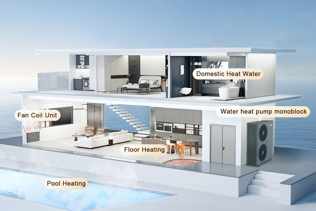 Bomba de Calor de Fuente de Aire Monobloque Zealux Inverboost Plus R290 7kW - Bomba de Calor Multifuncional Inverboost ASHP para Agua Caliente