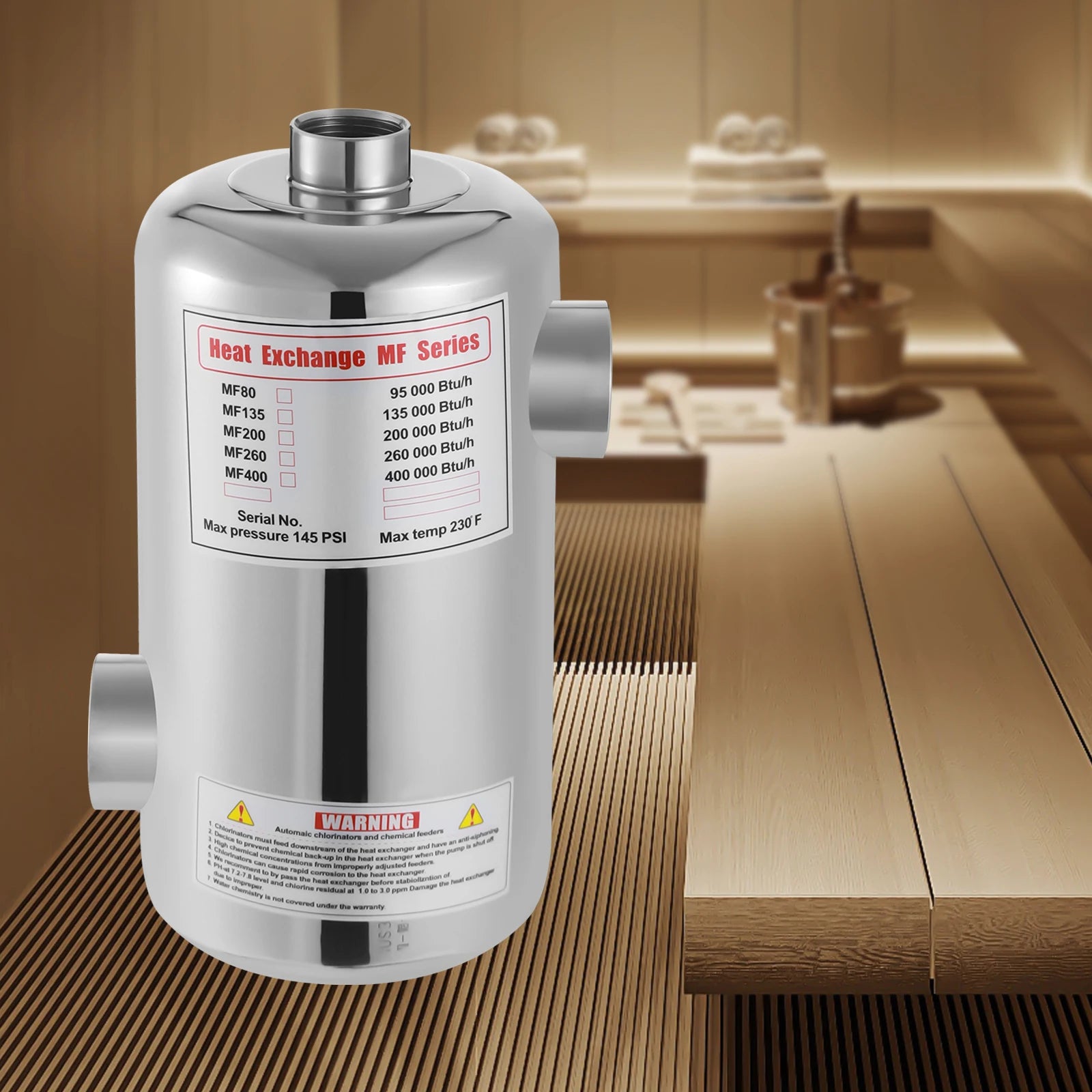 Améliorez le chauffage de votre piscine ou de votre spa avec l'échangeur de chaleur en acier inoxydable de 28 kW.
