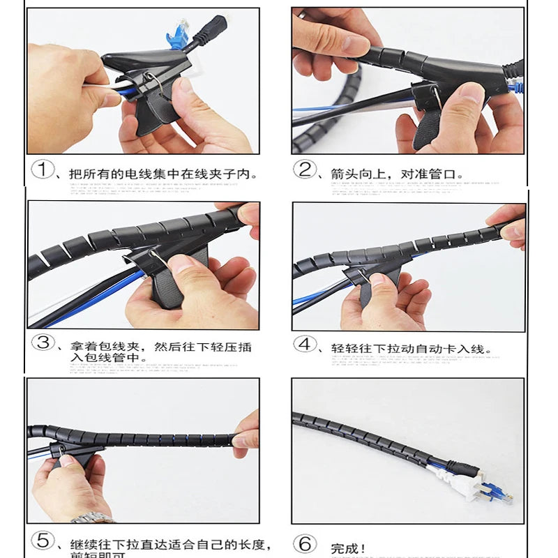5M Tubo di Stoccaggio Cavi Clip Organizzatore Guaina Avvolgicavo Protettore Flessibile Dispositivo di Gestione a Spirale