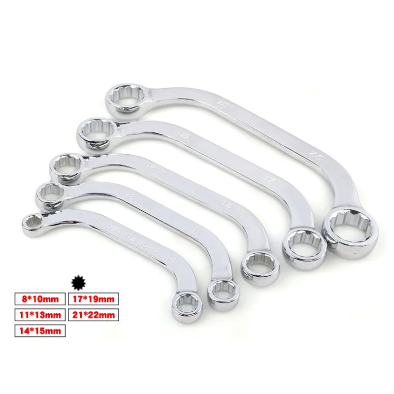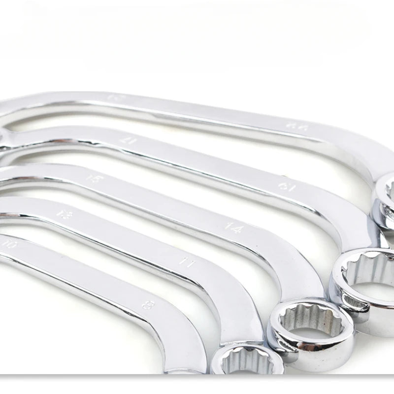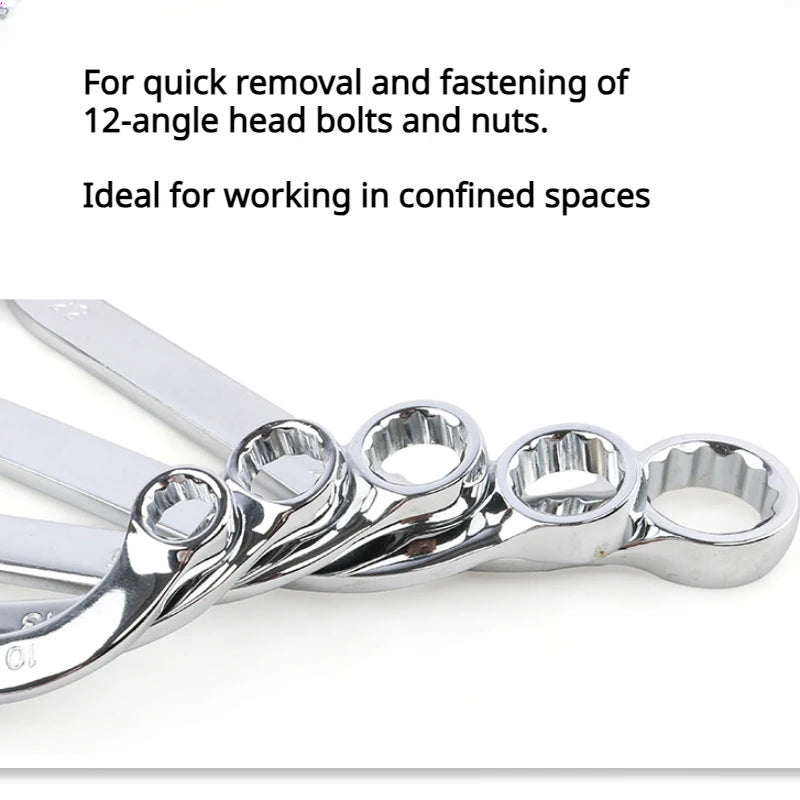 Abbraccia la versatilità e l'efficienza delle nostre chiavi a doppia estremità, meticolosamente realizzate in acciaio cromo vanadio per un'eccezionale durabilità e una presa confortevole. Questi strumenti, con la loro testa a dodici angoli a fiore di prugna, offrono una coppia superiore e un trattamento superficiale anticorrosione che ne garantisce la longevità, rendendoli l'aggiunta definitiva a qualsiasi kit di attrezzi professionale.