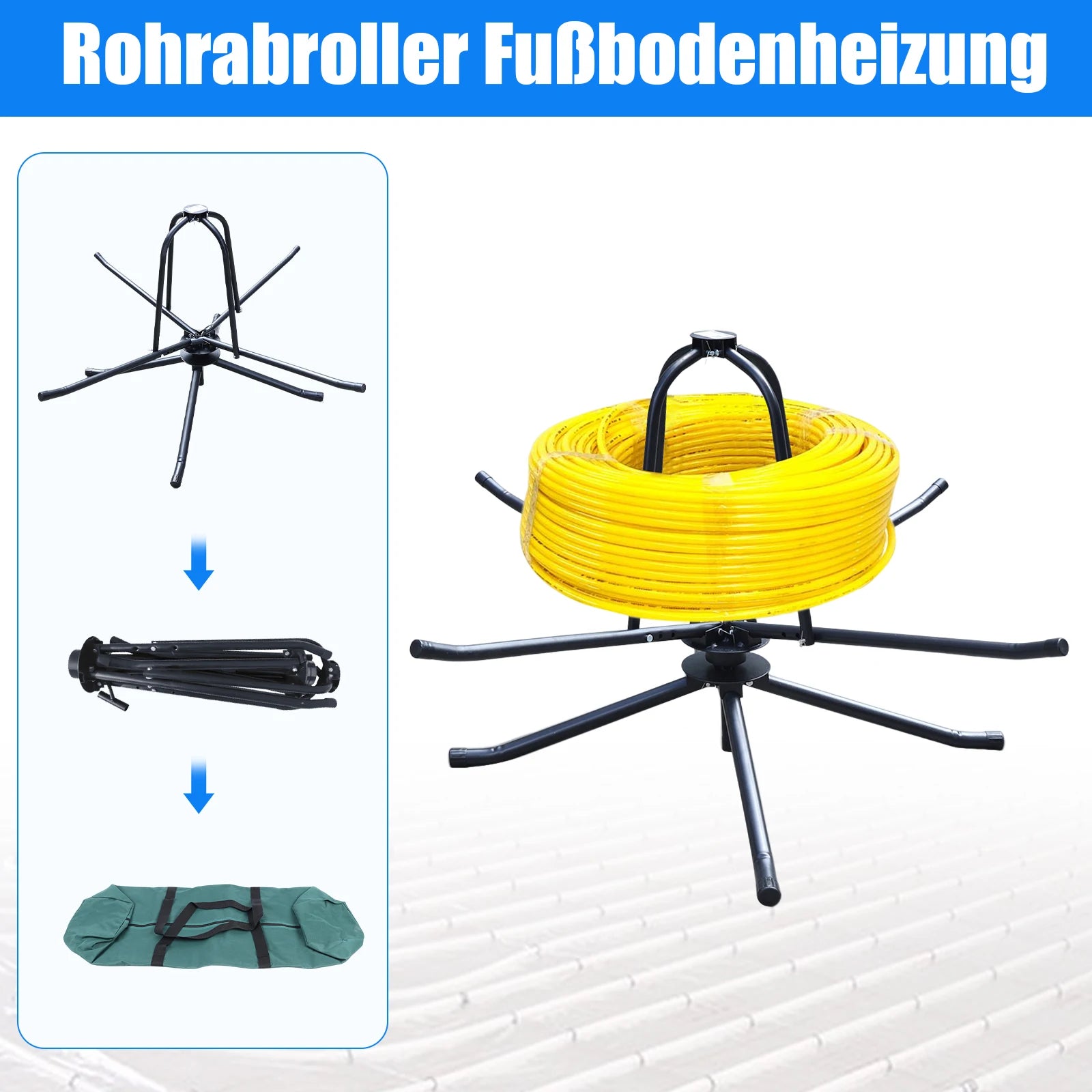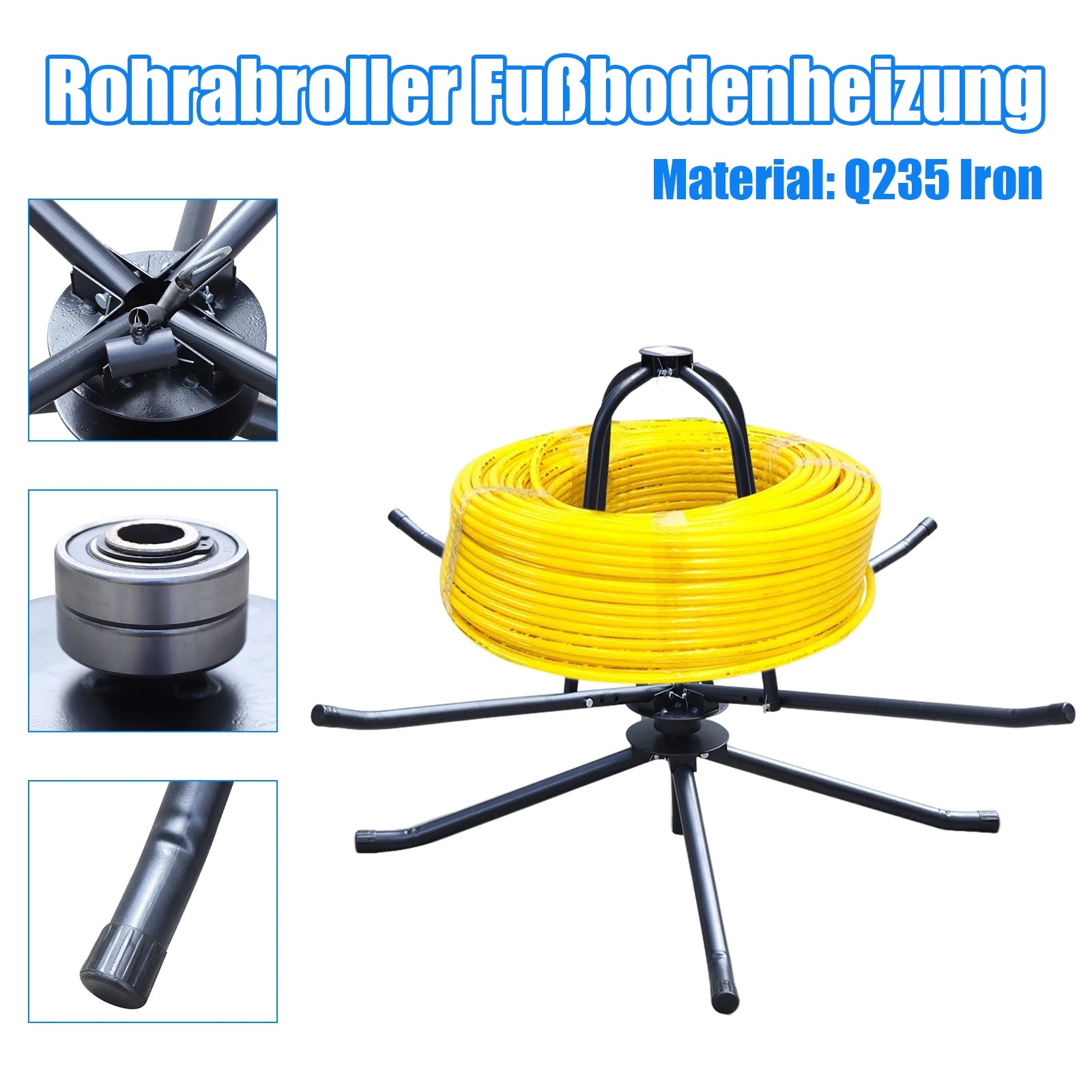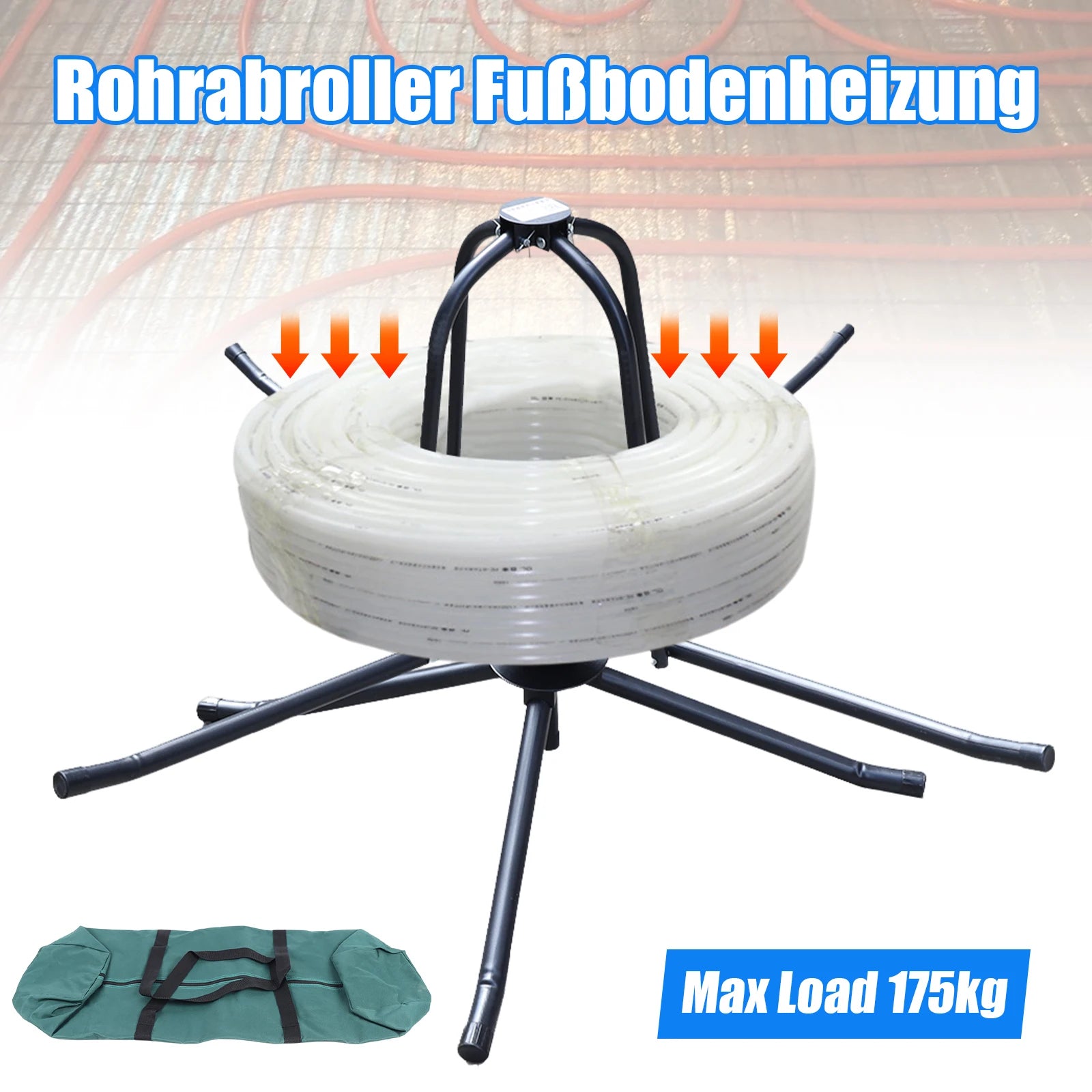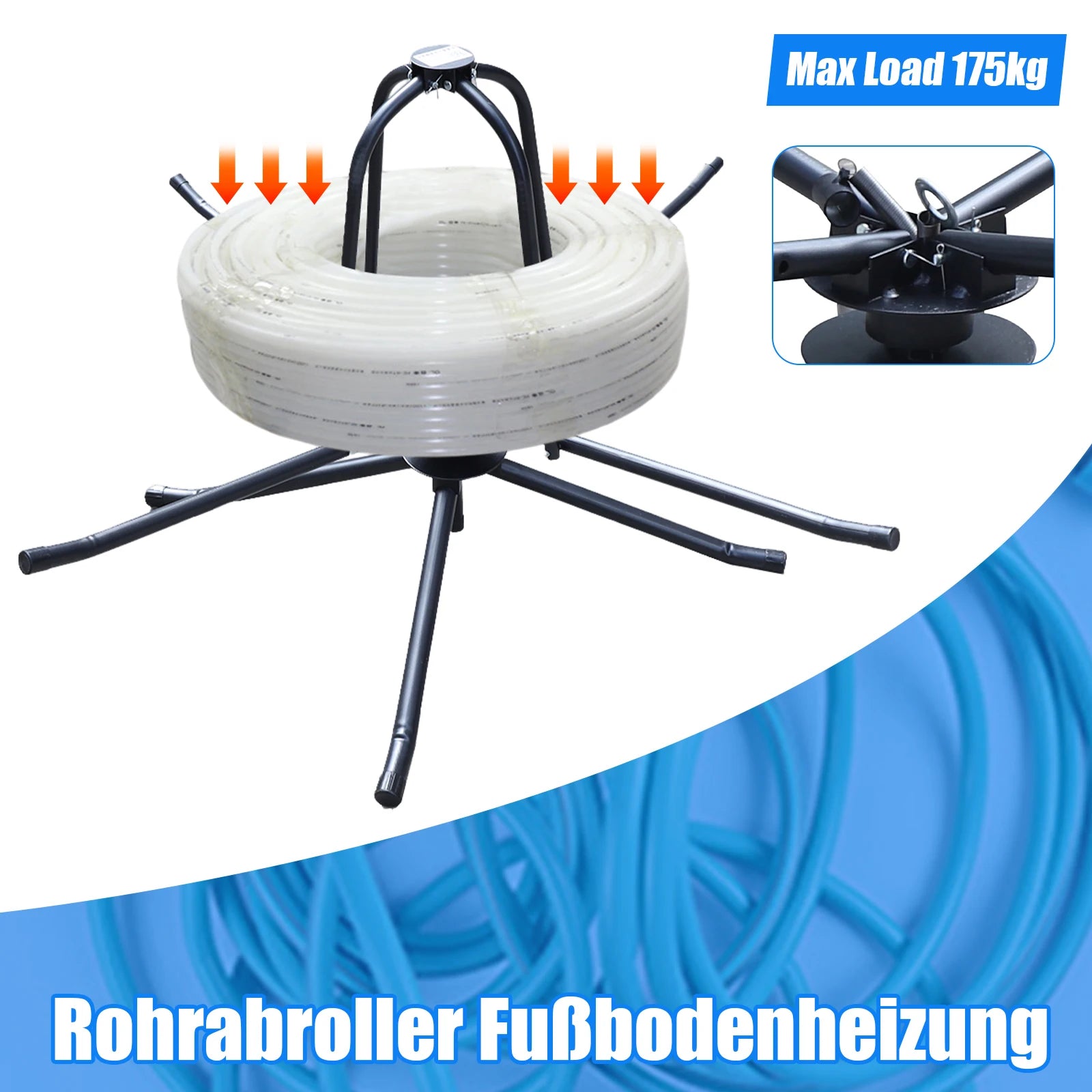 Durabilità e Stabilità - Costruito con ferro q235, il Distributore di Bobine è progettato per durare, con una capacità di carico fino a 175 Kg. L'inclusione di un supporto con quattro gambe ne migliora la stabilità, assicurando che il dispositivo rimanga fermo anche durante la gestione di rotoli pesanti di tubi per il riscaldamento.