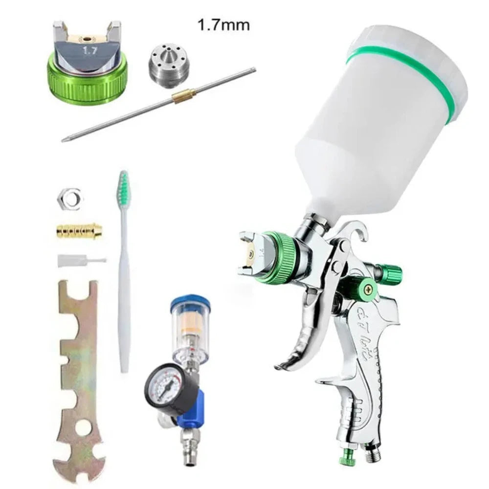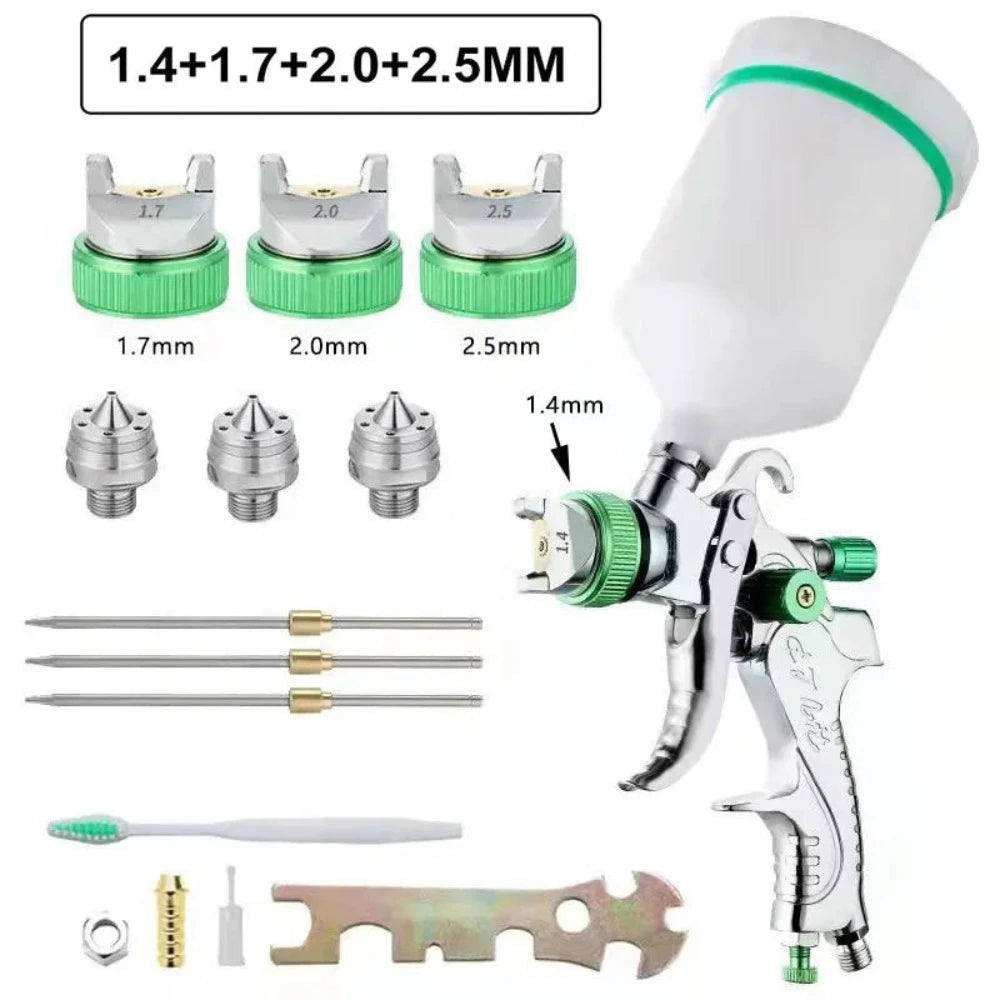 Pistola a Spruzzo HVLP Professionale 1.4/1.7/2.0/2.5mm Ugello in Acciaio Pistola a Spruzzo a Gravità Portatile per Verniciatura Auto Kit Fai-da-te