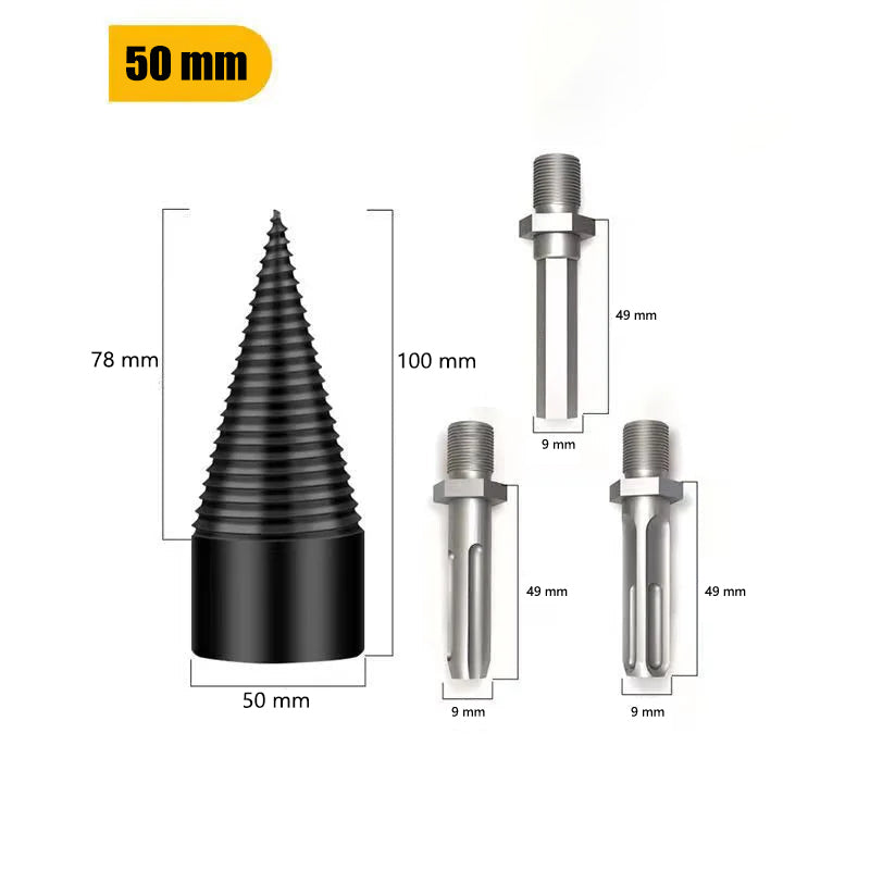 Punta per spaccalegna da 32/42/50MM con cono di legno con gambo quadrato/rotondo/esagonale
