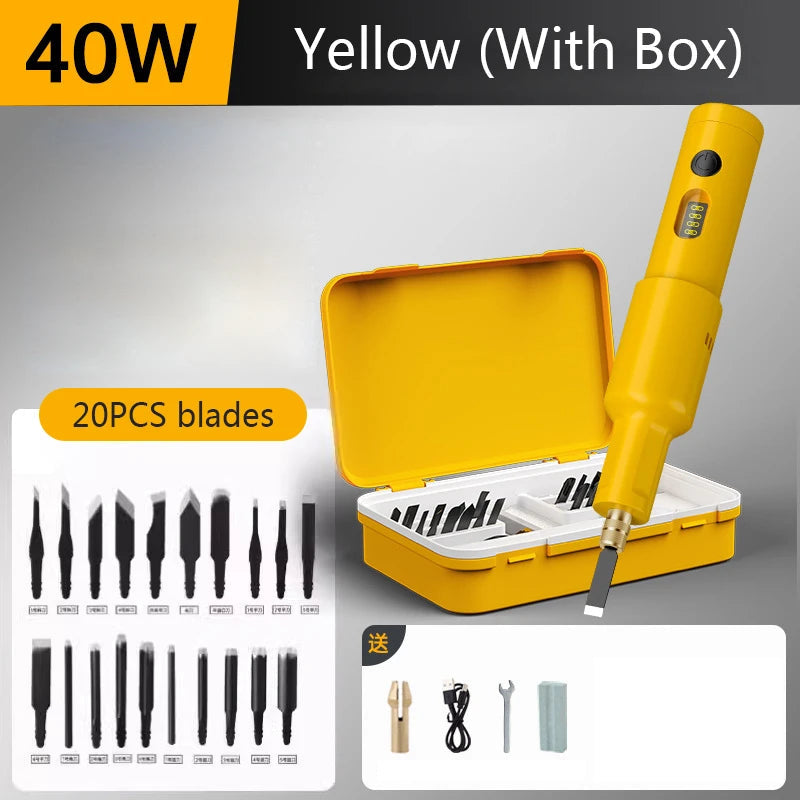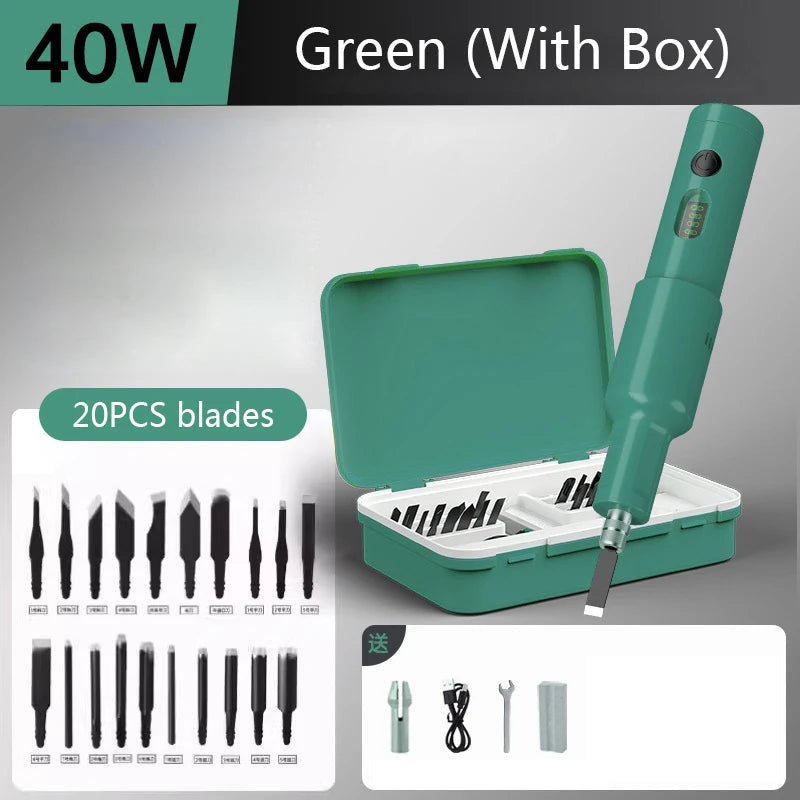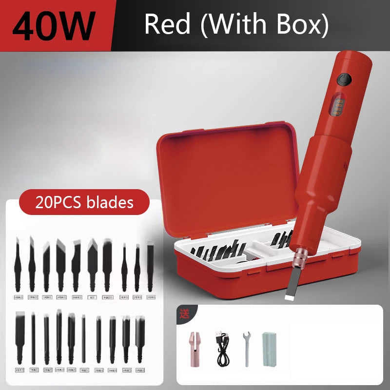 Il Set di Coltelli da Intaglio Elettrico da 40W è progettato per l'intaglio di precisione in mobili e lavori in legno, offrendo sia potenza che versatilità con le sue 20 lame incluse. Ideale per falegnameria, scultura e intaglio di radici.