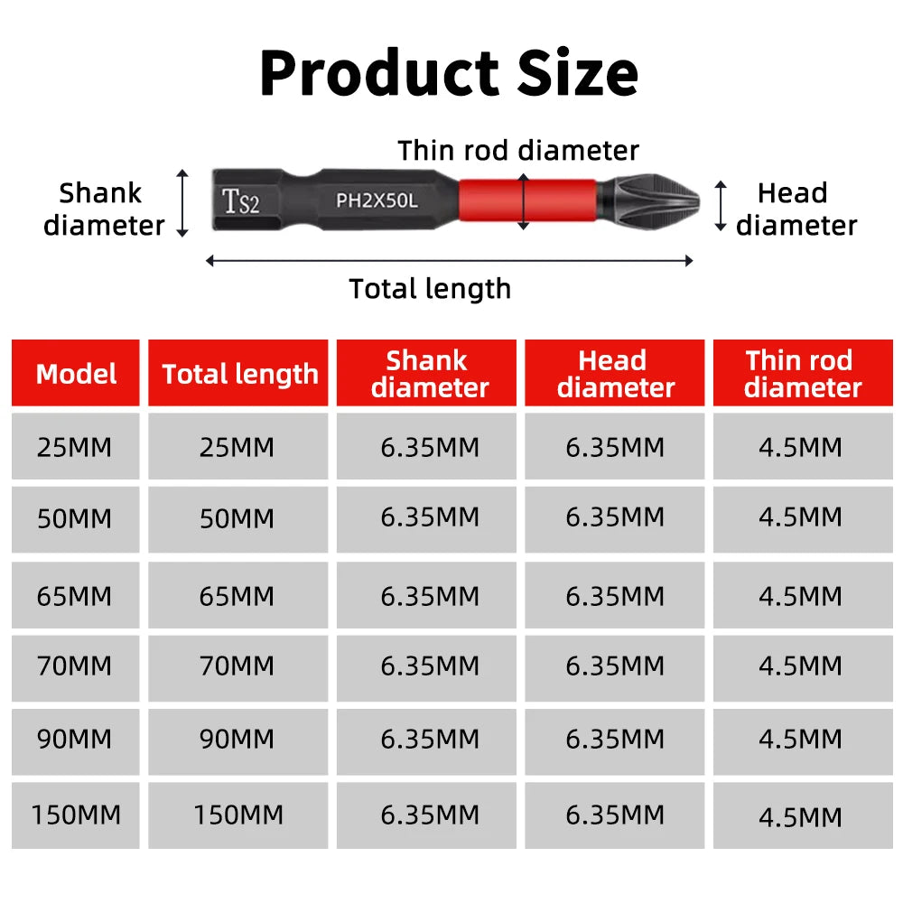 Set di punte per cacciavite Ph2 Magnetico Testa Batch Impatto Antiscivolo Croce Alta Coppia Durezza Vite Acciaio Lega Impermeabile