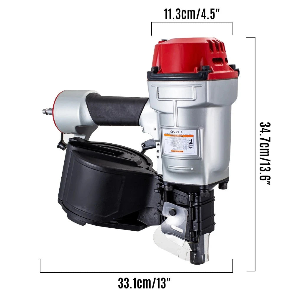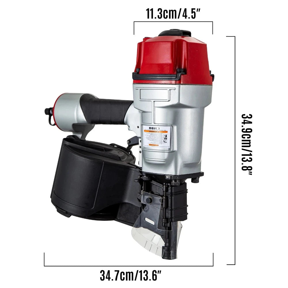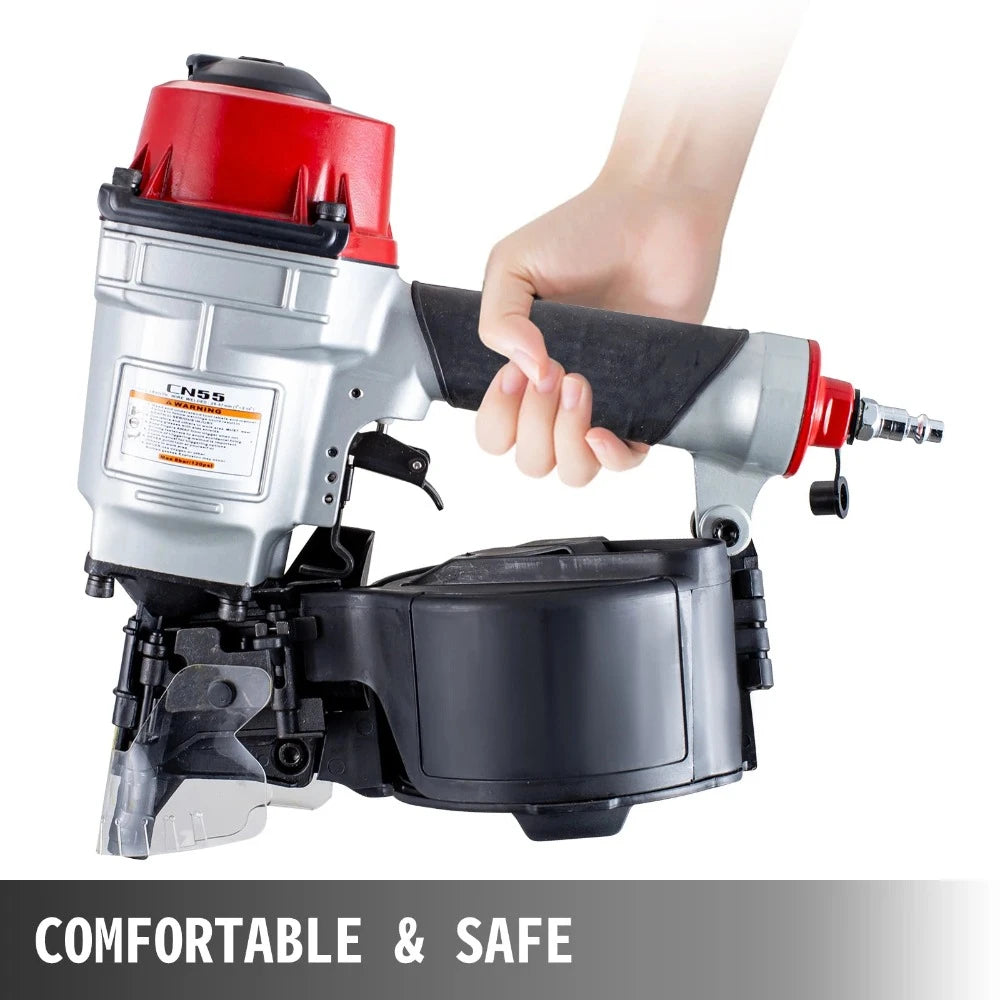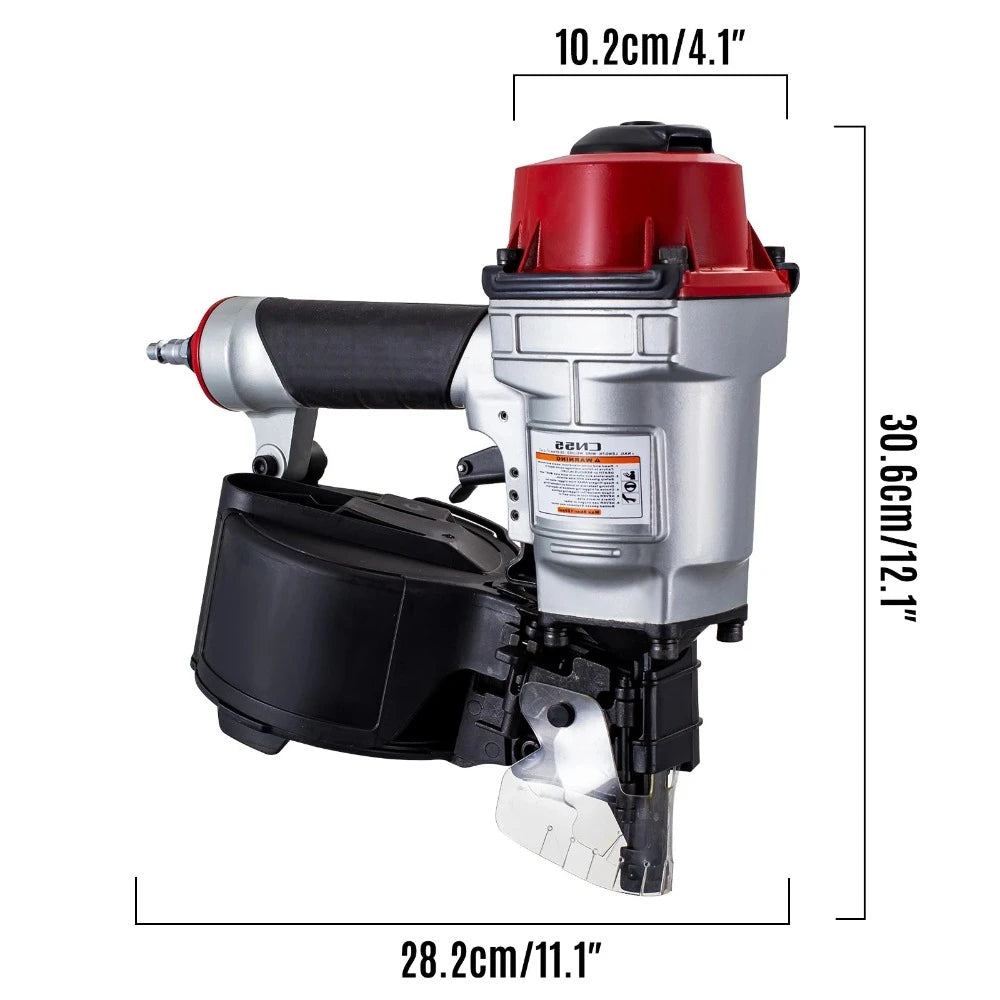Prestazioni Fluide & Regolazione della Profondità: Pressione dell'Aria: 100-114 PSI/7-8 kg/cm². Questa chiodatrice a bobina, collegata al compressore d'aria, consente la regolazione della profondità senza attrezzi, progettata per una chiodatura a filo e ad affondamento più precisa. Dispone di un dispositivo di scarico dell'aria a 360 gradi senza attrezzi, che consente agli utenti di mirare nella direzione dell'uscita dell'aria. È possibile selezionare modalità di sparo sequenziale o a contatto per impegnarsi in lavori di chiodatura efficienti cambiando il grilletto. Può raggiungere la velocità di sparo rapida di 3 chiodi al secondo.