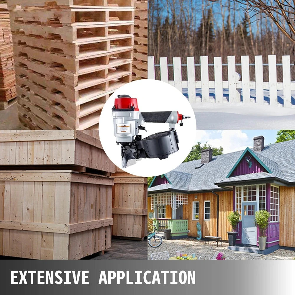 Ampie Applicazioni: Questa chiodatrice a bobina per rivestimenti fornisce una soluzione efficiente per inchiodare pallet di legno, grandi scatole di imballaggio in legno e altre strutture in legno, perfetta per l'uso professionale nella lavorazione del legno. Si consiglia di non utilizzarla su materiali duri come cemento, acciaio e così via.