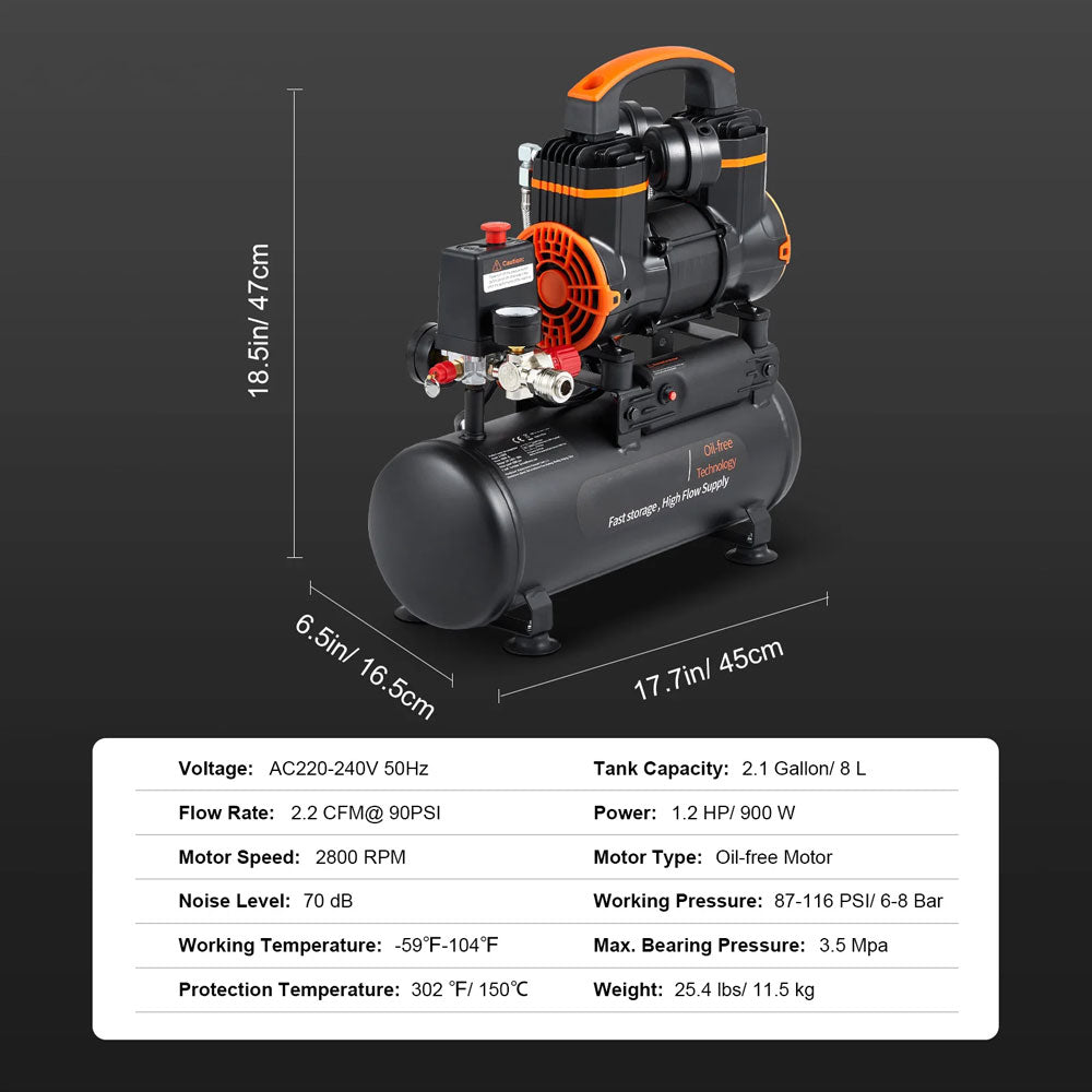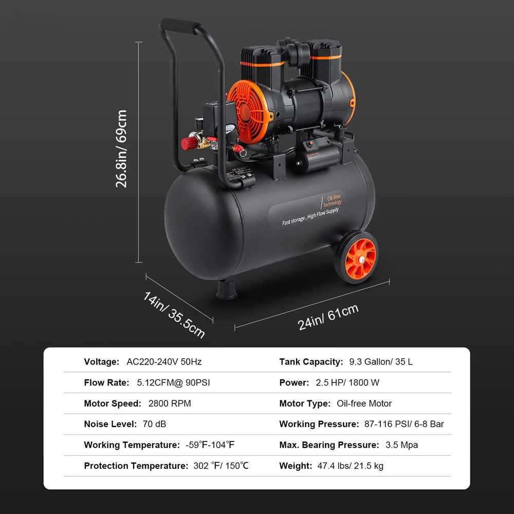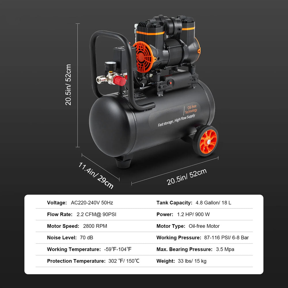 Cichy kompresor powietrza 900W 1450W 1800W Cicha bezolejowa przenośna pompa powietrza do naprawy domowej i pompowania opon
