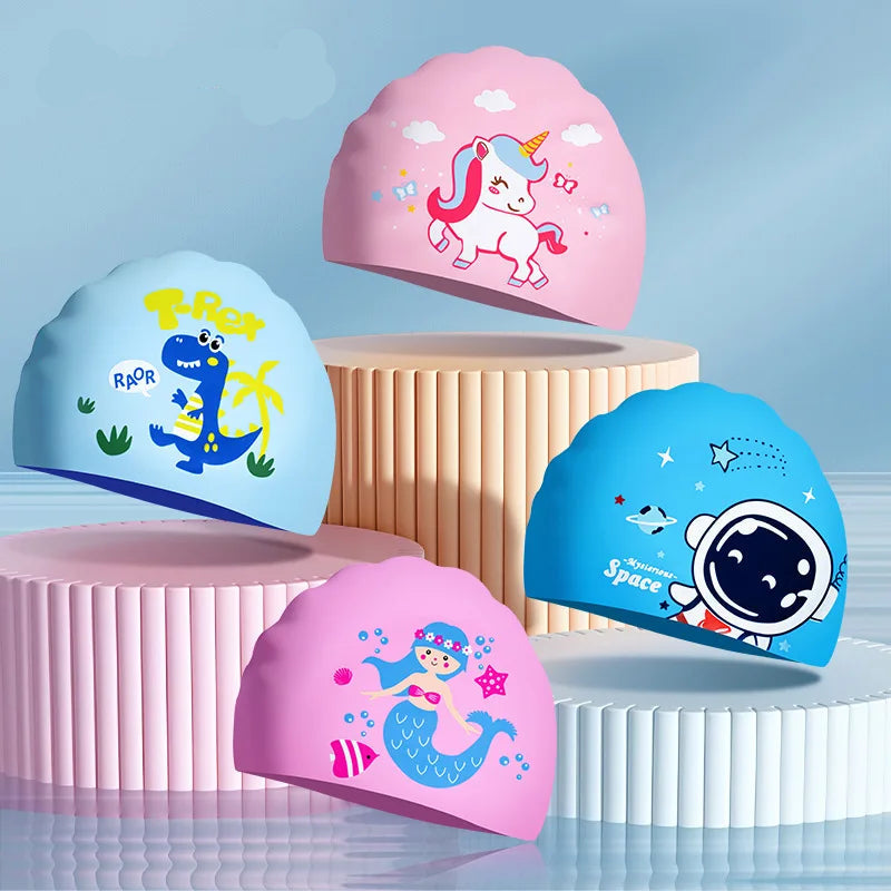 Dive into fun with our Children's Cartoon Silicone Swimming Cap, designed specifically for young swimmers!