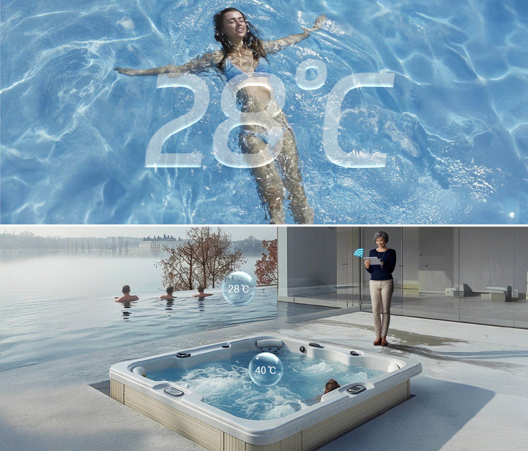 This high-performance heat pump has been specifically designed for pools and spas and operates reliably even at extreme temperatures as low as -12°C. Thanks to precise temperature control, it ensures year-round comfort: pool water stays comfortably at 28°C, and in spa mode can reach up to 41°C – providing a truly relaxing experience. Whether for daily swimming or a soothing spa session, it delivers an efficient,precise, and luxurious heating solution.