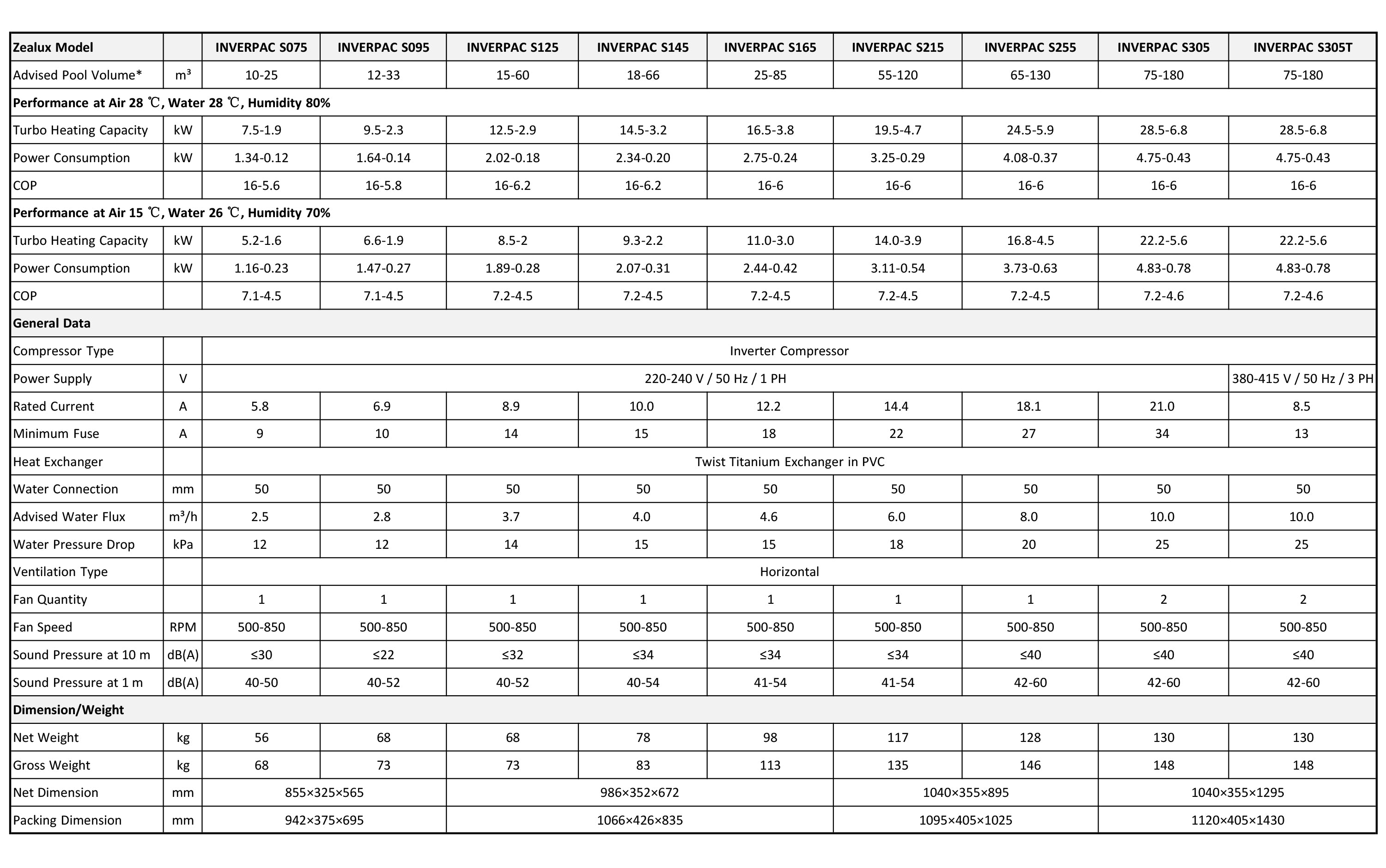 Zealux 7.5kW~28.5kW INVERBOOST Elite Pool Heat Pump - Single/Double Fans