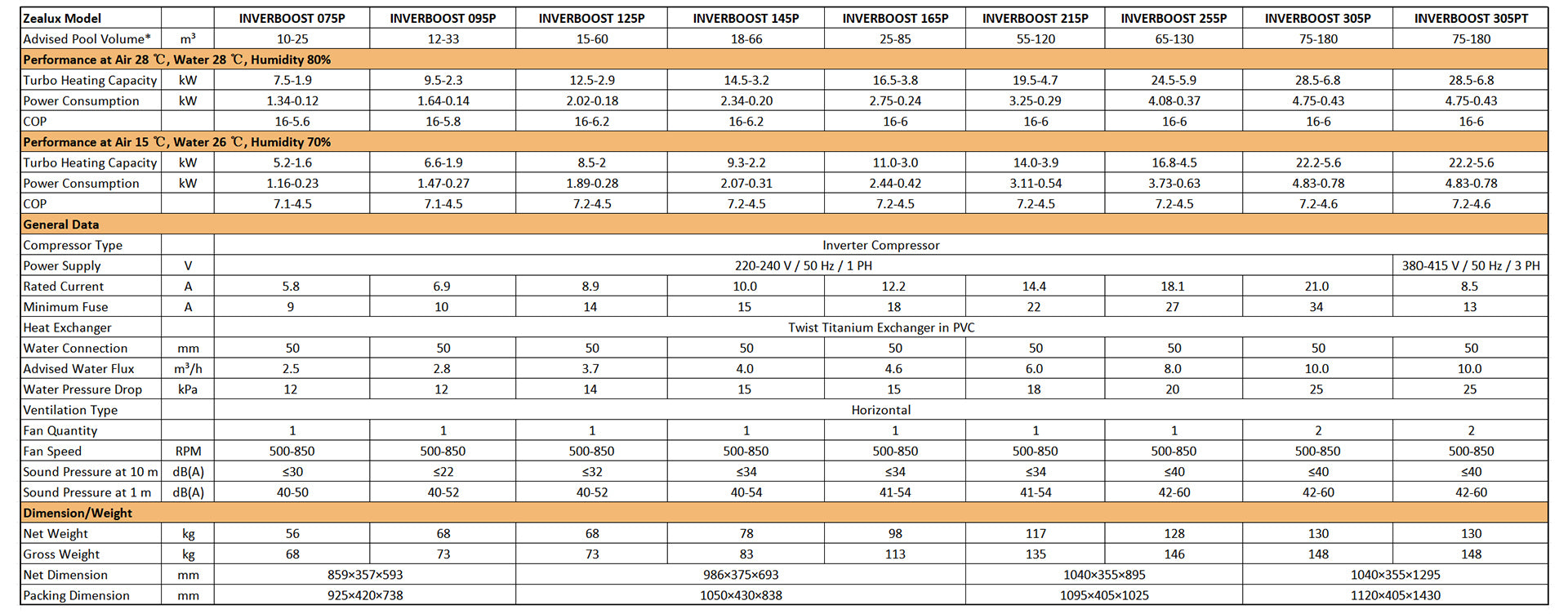 Zealux 7.5kW~28.5kW INVERBOOST PBS Pool Heat Pump - Single/Double Fans